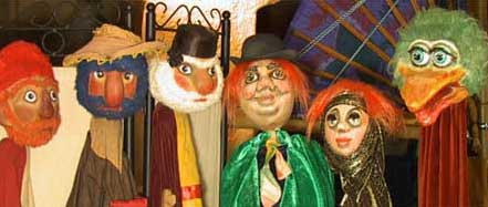 Schauspiel mit Mensch und Puppen.